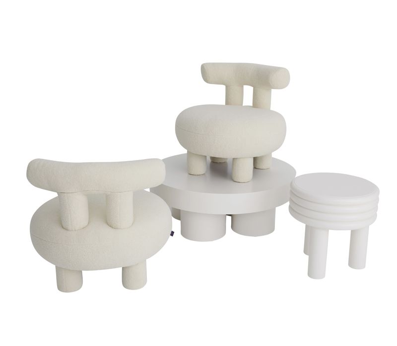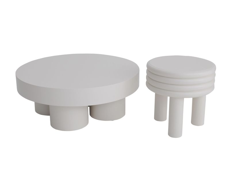 Made from sturdy materials, this Bubble coffee table is designed with a glossy white finish that will brighten any living room. Three cylindrical legs add a grounding presence to this table. Complete the look with other pieces from the Bubble collection.