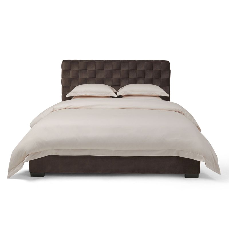 • Features an intricately woven upholstered headboard in rich chocolate tone, adding depth and character to your space.