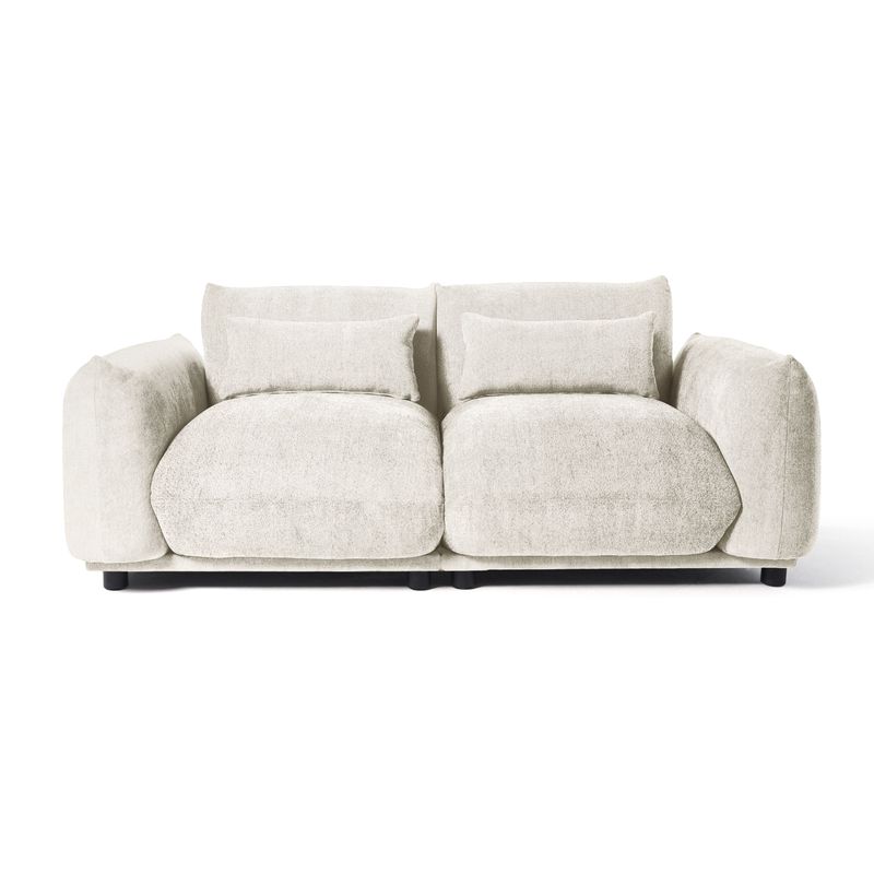 • قماش فاخر بلون أبيض يعزّز الشعور بالدفء والراحة، بفضل نسيجه الكثيف ونقشته البارزة وملمسه فائق النعومة