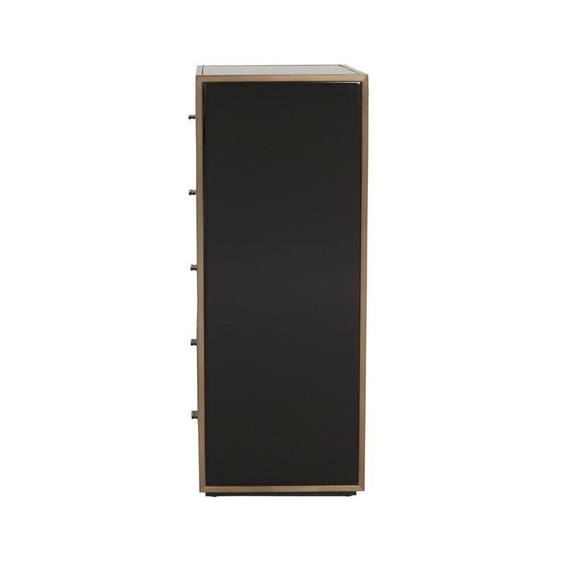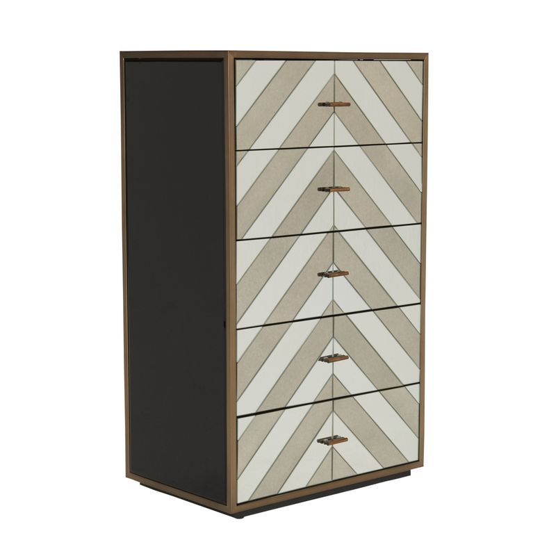 Introducing the Flecha Tallboy, adorned with a mesmerizing chevron pattern, and reflecting a touch of opulence in every corner. Its mirrored surface adds a luxurious ambiance to any space, effortlessly blending with your existing decor.