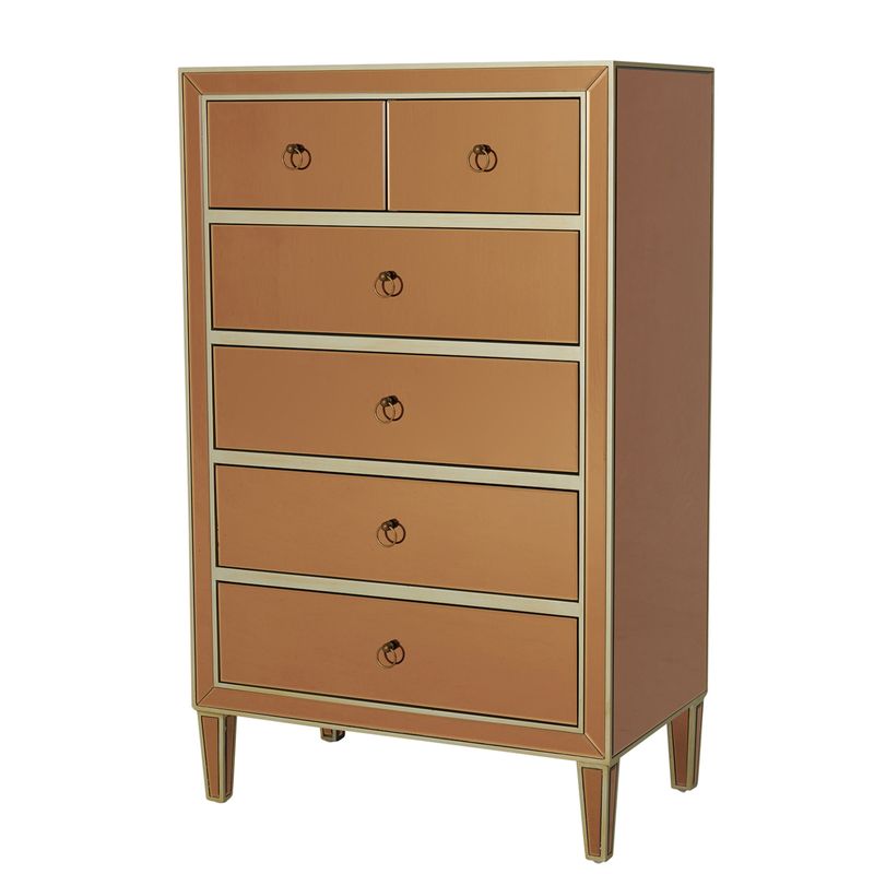 Mirrored furniture is essential because it opens up small spaces, works with any wall colour and makes a stylish statement. The Nendo tall bay is a case in point. Reflecting vintage charm with antique silver detailing, this piece is mirrored on the front, sides and top, and the six-drawer compartments are an ideal storage option. The brass-finished drawer pulls complement the vintage look.