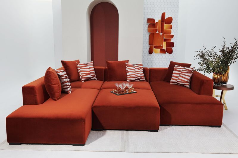 تجمع صوفا روما المركزية الطويلة المميزة بلونها القرميدي الجميل بين الفخامة العصرية والتصميم الكلاسيكي.