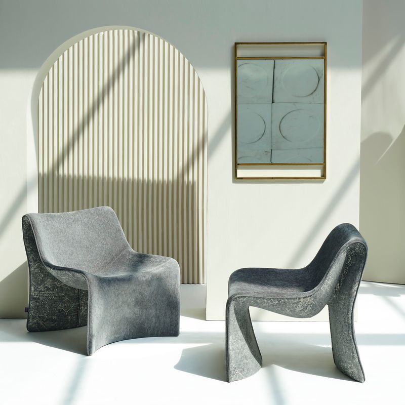 يمنحكم هذا الكرسي المنحوت الإحساس بالنعومة ويضيف مزيداً من الأناقة على غرفة المعيشة، حيث يوفّر تصميمه الفريد من القماش الفاخر الشعور بالراحة عند الجلوس. أمّا قوامه الذي يجمع عناصر القماش والمعدن فيعزز المساحة المنزلية بتحفة بصرية تفيض بالجاذبية.