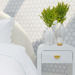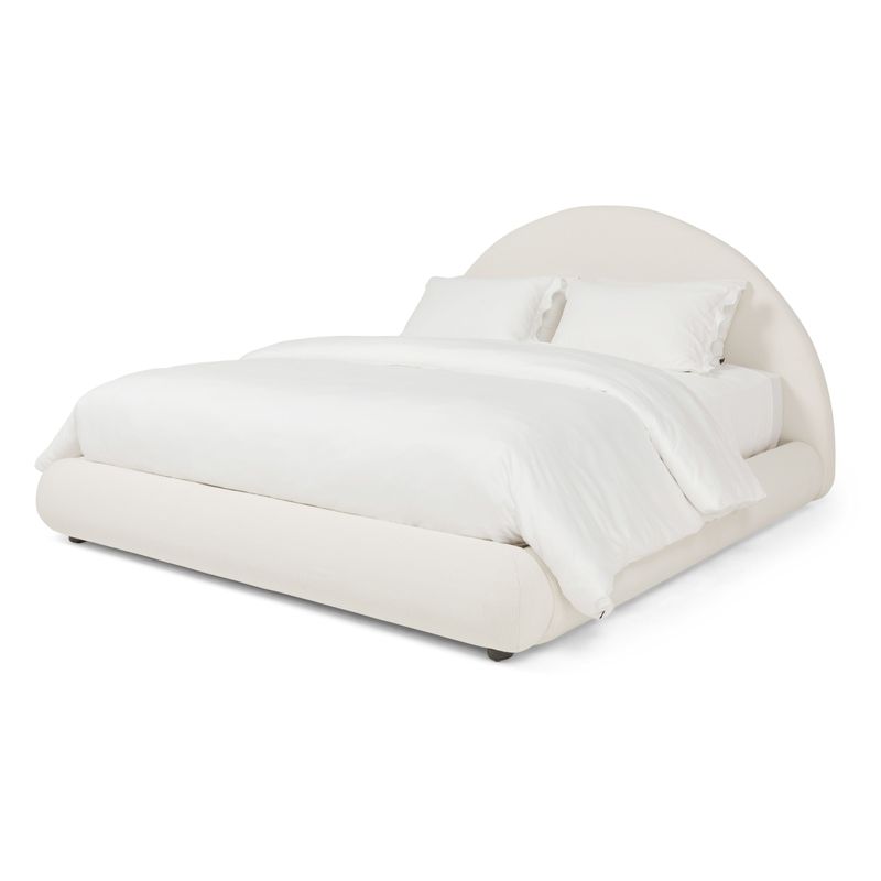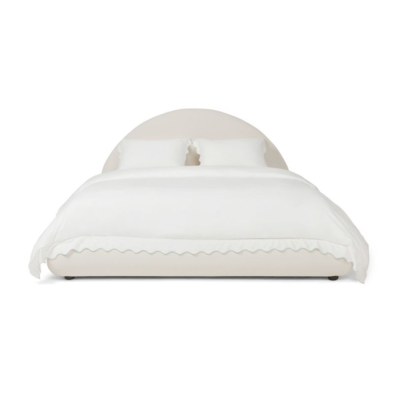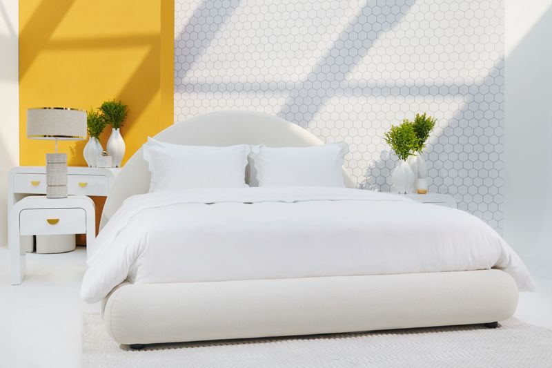 • يضفي القماش البارز بلونه البيج مع الخطوط الأنيقة للتصميم لمسةً عصريةً على غرفة النوم.