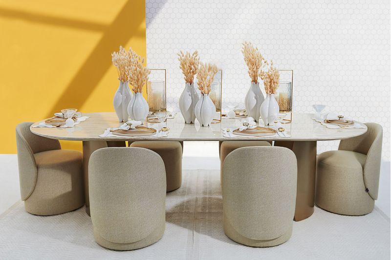 تعيد طاولة طعام فيتشنزا من السيراميك تعريف الفخامة من خلال تصميمها الذي يمزج الأناقة العصرية والجمال الكلاسيكي.