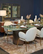 تحلو جلسات الطعام حول طاولة زين التي تتميز بسطح رخامي فاخر وقاعدة نحاسية معتّقة. وتجمع هذه التحفة الفنية بين الحضور الكلاسيكي والأناقة العصرية لتحوّل تجربة الطعام إلى مأدبة من عالم الخيال. كما تتسع مساحتها لاستقبال مجموعة تتراوح بين 6 و8 ضيوف.